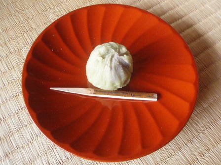 畳の上に上がり、そしてチケットを見せてしばらく待つと、京和菓子と抹茶が到着。