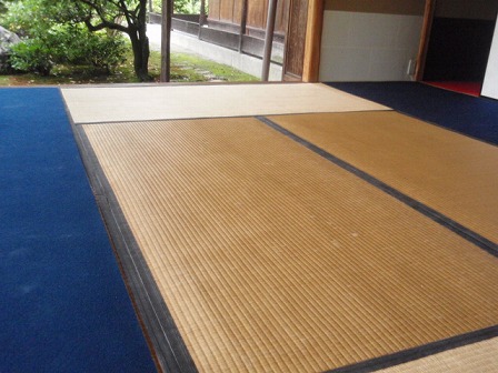 座る場所は、畳の上でもかまいませんし、青い敷物がある場所でもかまいません。