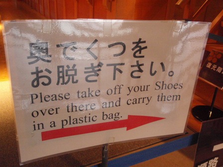 中に入るとパンフレットを入口で見せ、そして靴脱ぎ場で靴を脱ぎます。