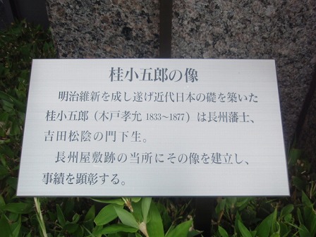 ホテルの脇には桂小五郎像がありました。長州屋敷があった場所が、この辺りとのことです。