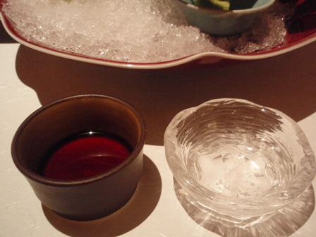 台もの八寸の内容は、金目鯛の煮つけ、金目鯛の柑香蒸し、伊勢海老カダイフ揚げ、鮑のソテー。