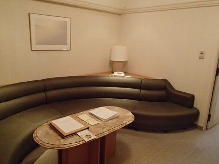 このホテルでは、全ての部屋にリビングがついているとのこと。今回宿泊した部屋では扉から入ってすぐに大きめのソファーがありました。
