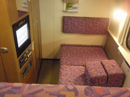 2階部屋は見ていませんが、狭さは地下1階と変わらないでしょう。ただ、高いところから見下ろす形で景色が見えますので、出来れば2階部屋か、車端部屋を利用したいところです。