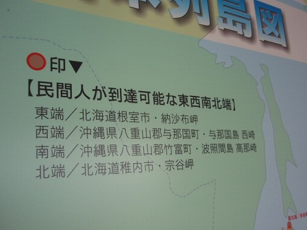 民間人が到達可能な東西南北端の情報や、領土上の東西南北端の情報が掲載。