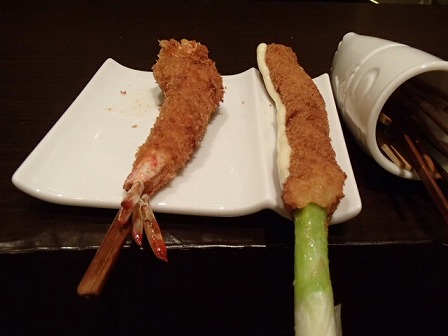 今回は、「串揚げおまかせ御料理」を選択。これは値段が決まっているものではなく、次から次に出てくる串カツを食べていき、自分のお腹の具合が良いところで自分でストップをかける仕組みです。