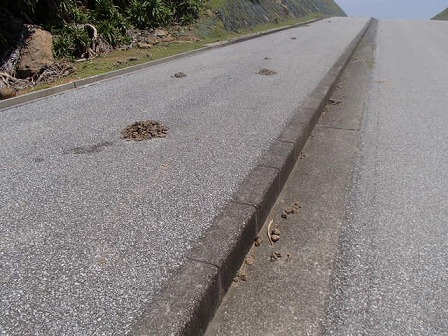 舗装された道を進んでいきますが、ところどころによからぬ物体が。
