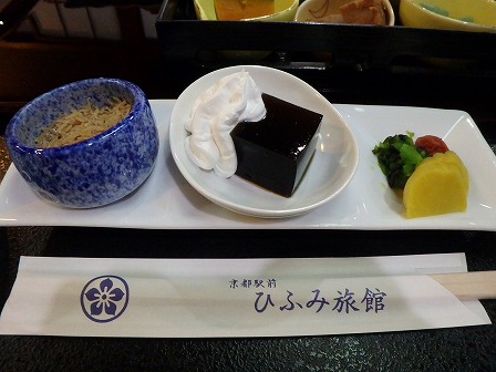 西本願寺の朝のお勤めの晨朝を終えてひふみ旅館に戻り、朝食を食べることに。