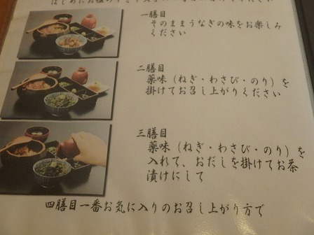 ひつまぶしの食べ方の説明もありますので、初めてのひつまぶしでも安心。