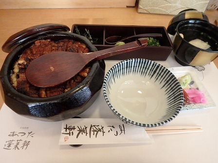 ひつまぶしという言葉はこのあつた蓬莱軒の登録商標とのこと。とはいえ、メニュー等で他のお店がひつまぶしという名称を使っても問題ないそうです。