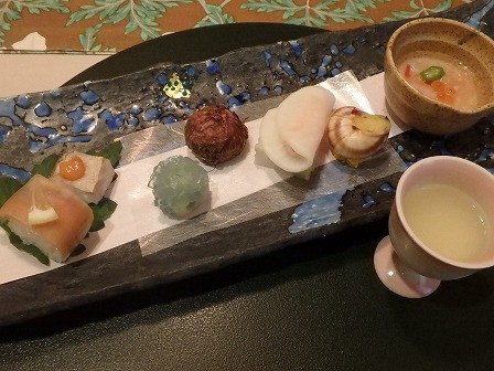 ここで日本酒追加。選んだのは黒龍の大吟醸。1.5合で2240円でした。黒龍は有名な日本酒で、大吟醸は文句なしの味わい。