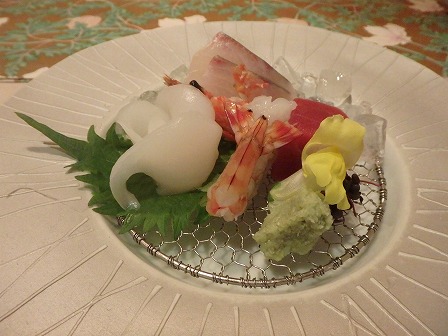 刺身。福井県は日本海に面しているので、魚介類もお勧めできます。縞鯵、雉ハタ(キジハタ)、マグロ、才巻エビ。才巻エビは車エビの小さいサイズのものを指します。
