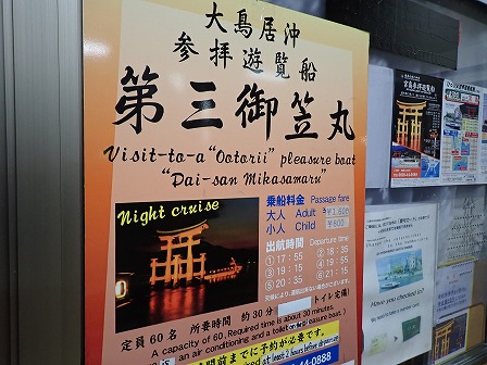 現地まで行き、チケット等の手配を済ませ、3号桟橋待合所で待ちます。1600円。