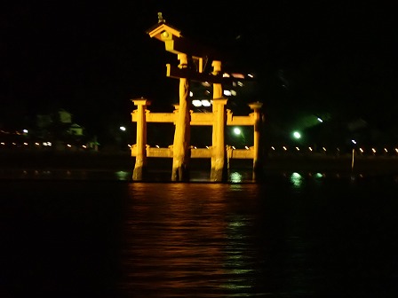 - 夜間の厳島神社 大鳥居観光、徒歩で大鳥居に接近