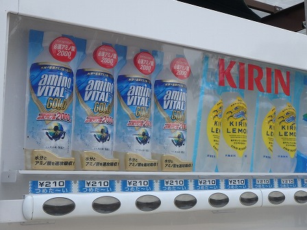 自動販売機。山頂価格です。何本かは自宅か、もしくは駅前などで買っておくと良いでしょう。夏場はしっかりと水分補給をする必要があります。