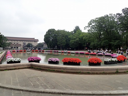 大きな噴水と奥にはお目当ての東京国立博物館。8分くらいでたどり着くことが可能です。