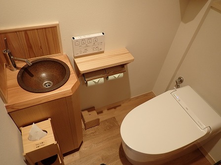 こちらも部屋風呂。浴槽の形が違っている程度です。空いている方を使いましょう。