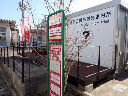 駅から近場にバス乗り場があり、そこから「伊豆の国 ぐるっとパス」を用いて観光先に移動することができます。他のバスなどを使っても構いませんが、このバスの方が分かりやすいです。