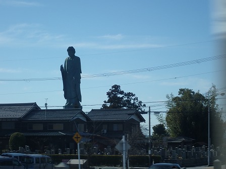 車窓を眺めながら。途中、巨大な大仏が見えました。