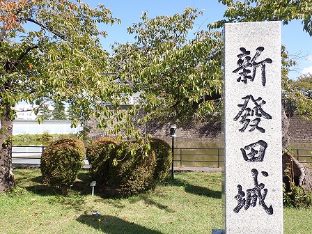 堀の手前側は公園になっており、そこには新発田城の石碑もあります。