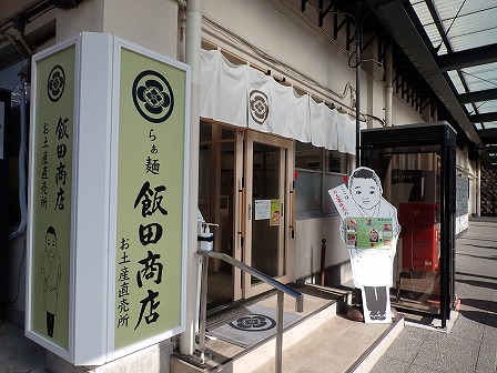 駅前にある「らぁ麺 飯田商店」のお土産用のラーメン売り場。有名なラーメン屋だとは知っていますが食べたことはないです。