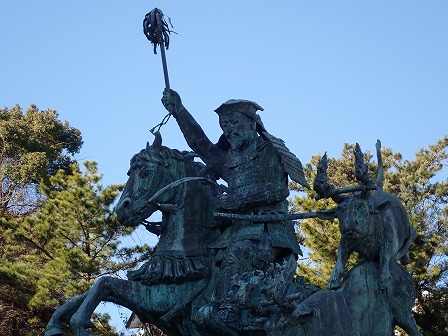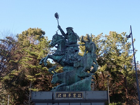 小田原城がある東側ではなく西側にある北条早雲公の像。北条家1代目です。