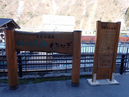 駅構内にあった「宇奈月温泉 駅の足湯 くろなぎ」。外からでも利用できるようです。