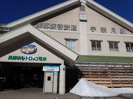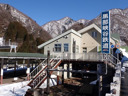 近くにある黒部峡谷鉄道。ここから黒部峡谷へトロッコ列車で観光できます。時期によっては運行していません。