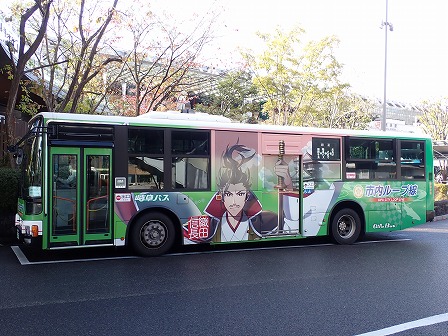 バス。市内のループ線もあるので、状況によっては使っていきましょう。織田信長のイラストも描かれています。