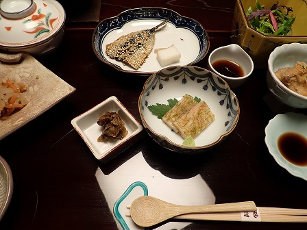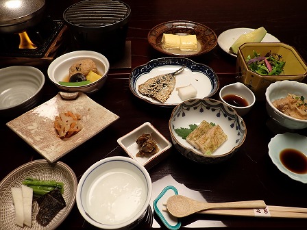 富山県延楽 宇奈月温泉の朝食は部屋で提供されます。