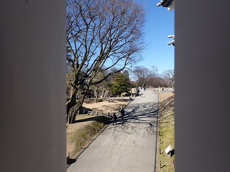窓の隙間から見た外の様子。