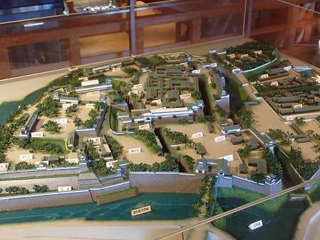 金沢城の模型。この五十間長屋がある場所は二ノ丸の場所です。