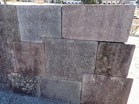 粗加工石積み。割石を加工して形や大きさを整えたもの。