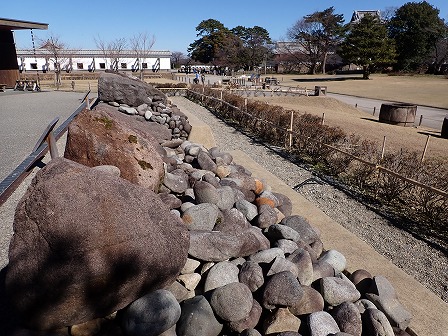 石垣の様子。石垣の積み方にはいろいろありますが、これは切石積み。